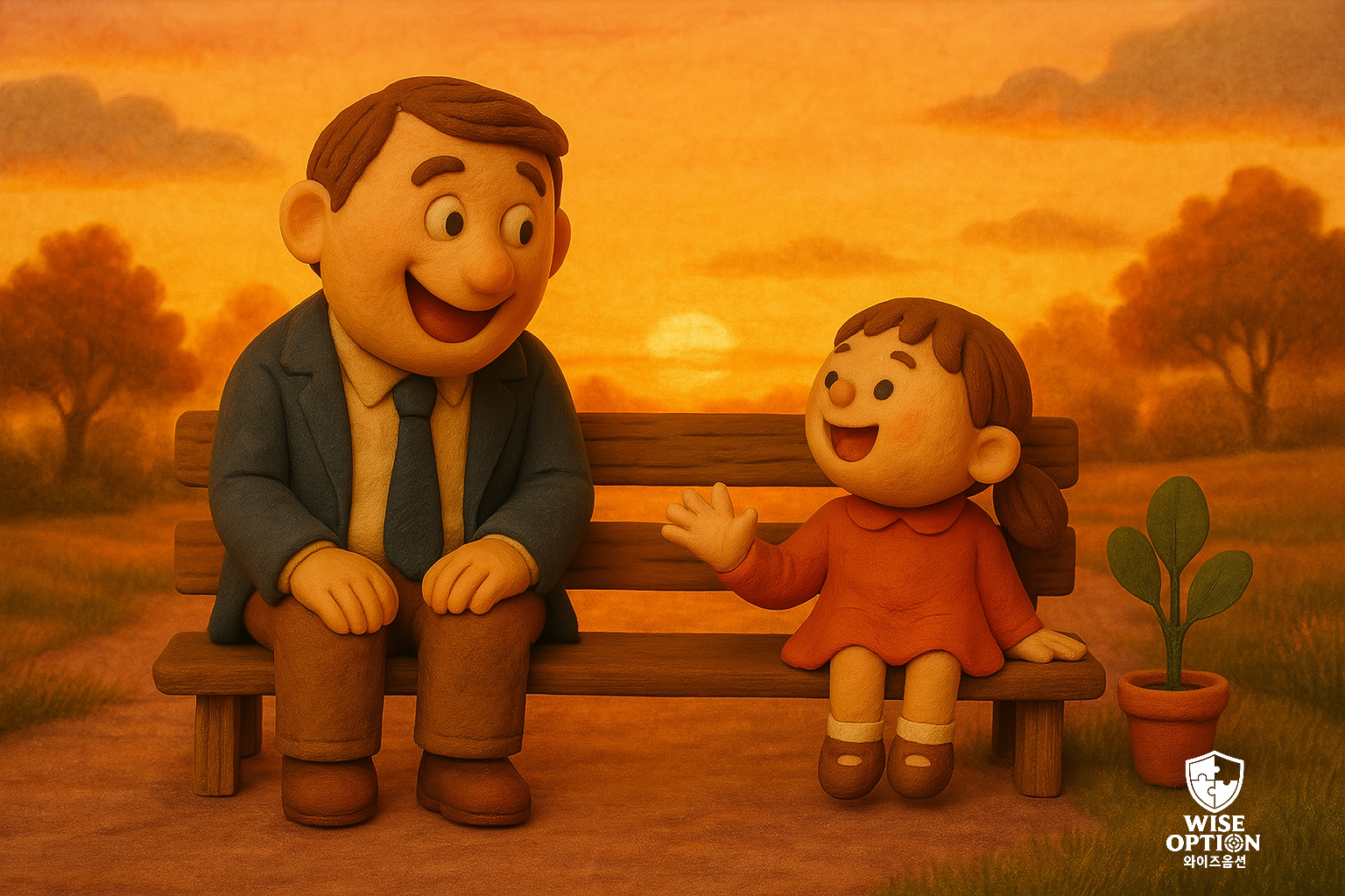 그러던 어느 흐린 오후, 아저씨는 공원 벤치에 앉아 무심코 구름을 올려다보다, 옆 벤치에 앉아 있던 작은 소녀와 눈이 마주쳤어요.