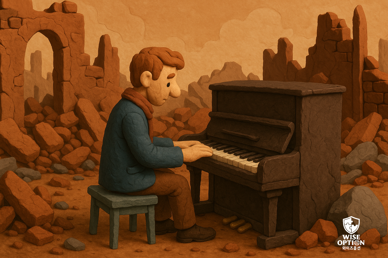 전쟁으로 폐허가 된 도시에서 한 젊은 피아니스트가 있었습니다.