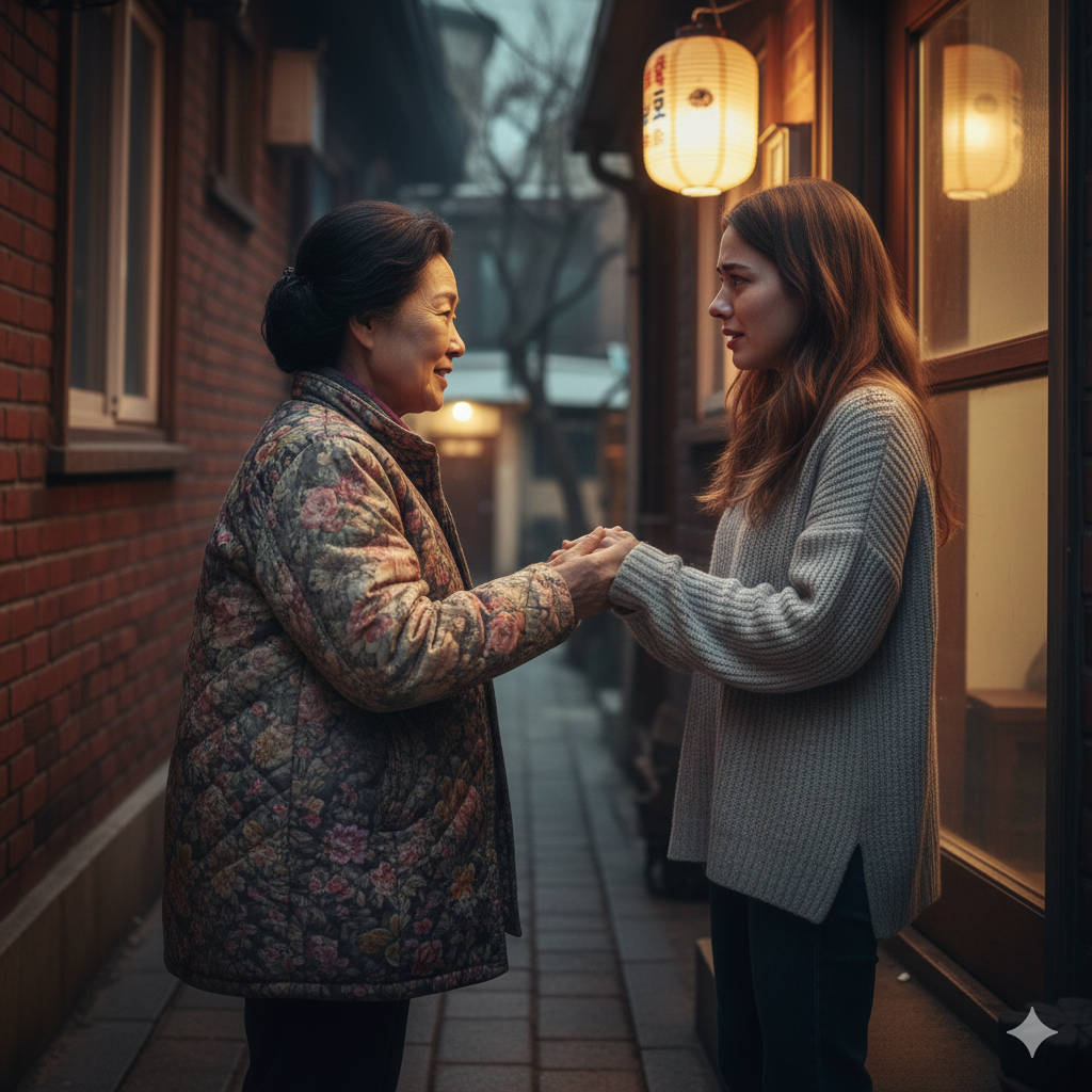 Bok-ja feared she might appear as an 'interfering ajumma, ' invading Hena's 'privacy.' Yet, her concern soon overwhelmed her fear of interference. Koreans simply cannot just pass by. The 'Jeong'—that deep affection that makes neighbors feel like family—had been activated.
