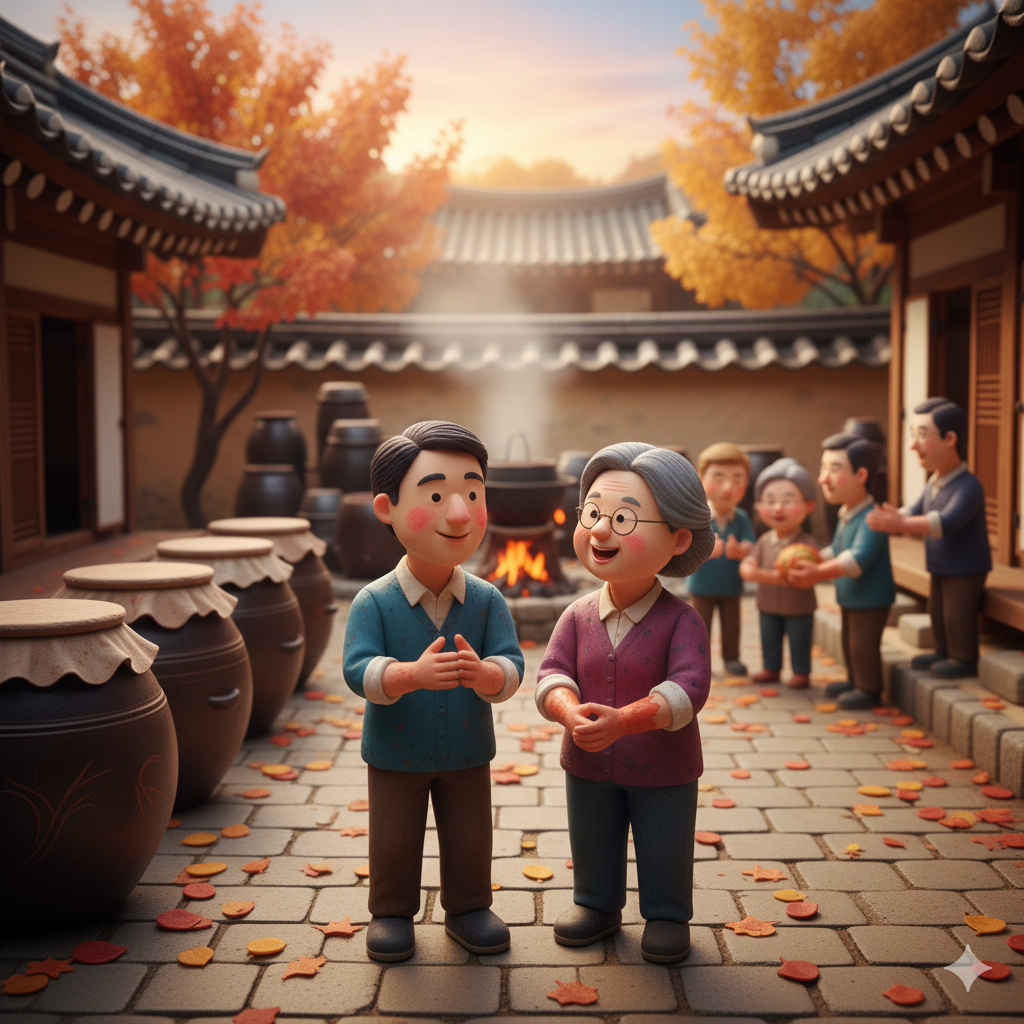 “우리 한국 사람들은 이 김치를 담글 때, 이웃과 나누어 먹을 생각으로 담았단다. 네가 오늘 본 것처럼, 온 가족이 모이고, 나중에는 이웃집과 서로 김치를 나누지. 이것이 바로 우리 한국인의 가장 깊은 '나눔'의 정신이자, '공동체'를 중요시하는 전통이란다.”
