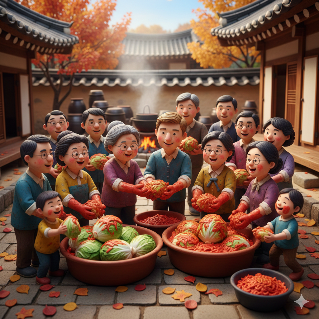 “마이클, 이게 바로 한국의 겨울나기 준비야! 온 가족이 모여서 일 년 먹을 김치를 담그는 거지.”
